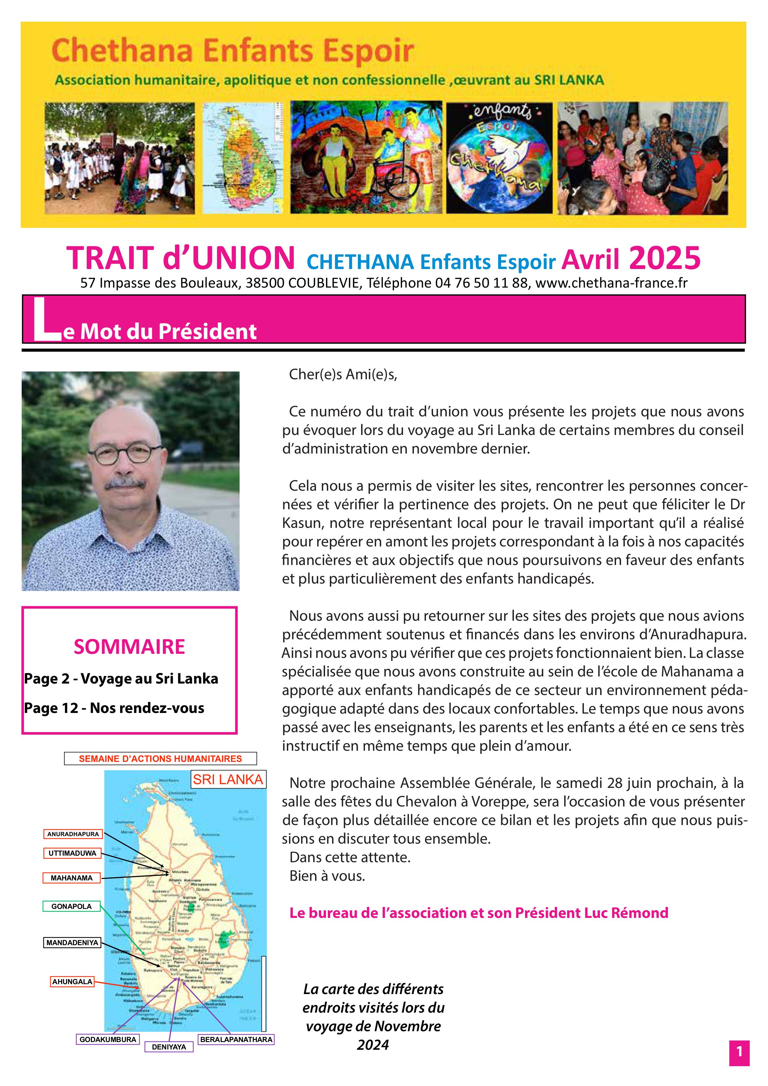 Trait d'union Avril 2025 a découvrir en page Chethana's Doc